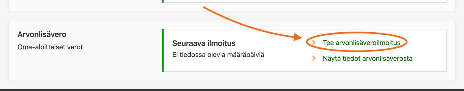 - Klikkaa Arvonlisävero-otsikon alta "Tee arvonlisäveroilmoitus".