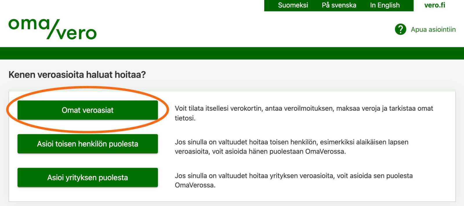 - Valitse "Omat Veroasiat"