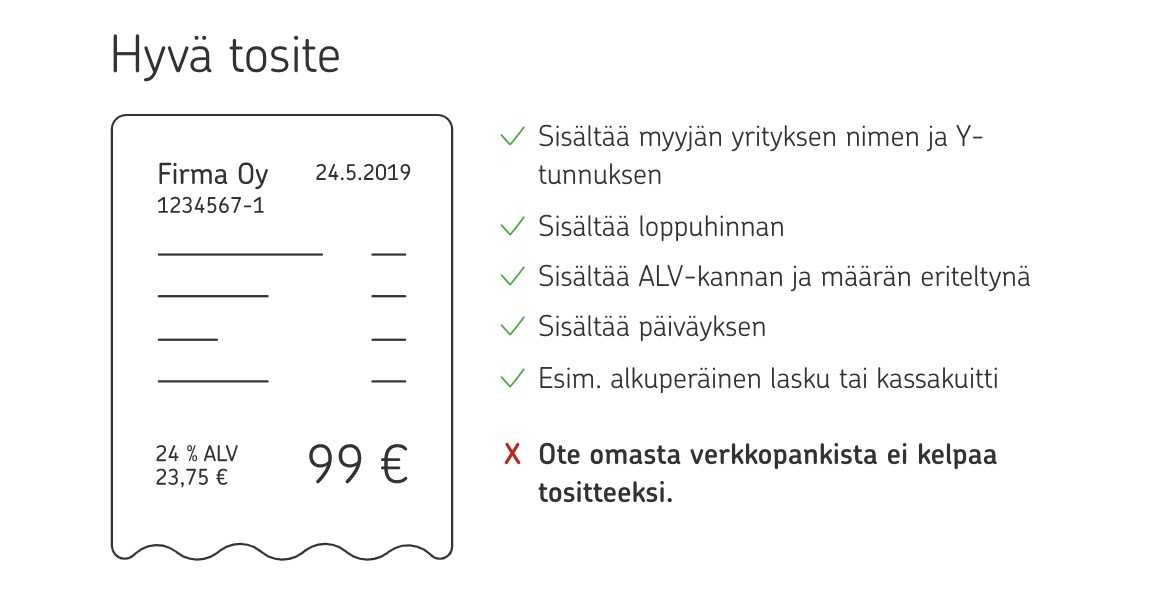 Huomaa, että tositteeksi ei hyväksytä pankista tulostettua tiliotetta.